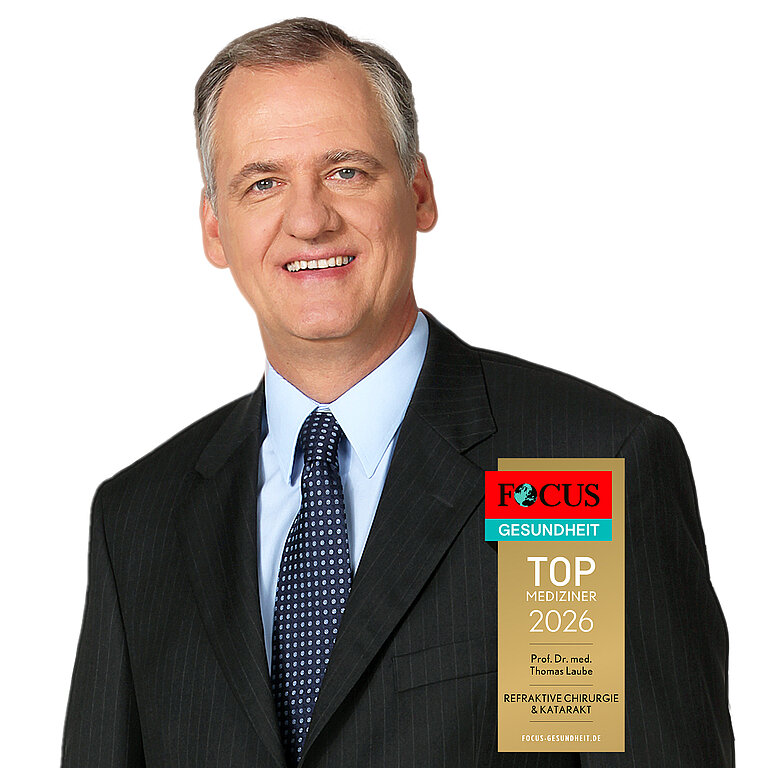 Prof. Dr. med. Thomas Laube ist seit 2023 ausgezeichneter Focus-TOP-Mediziner für die Bereiche Refraktive Chirurgie & Katarakt.